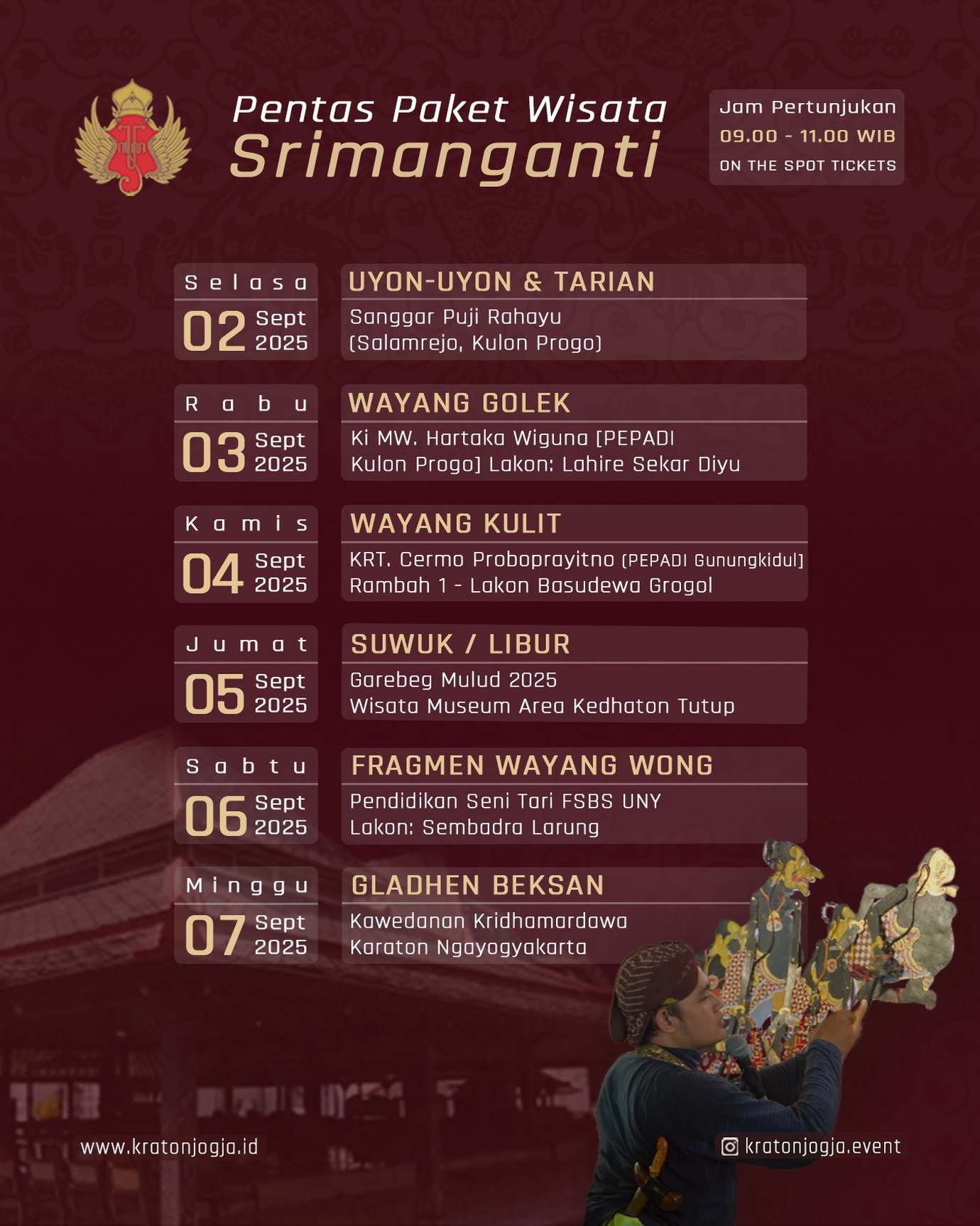 Pementasan ini dapat disaksikan langsung di Bangsal Srimanganti Keraton Yogyakarta, dengan membeli tiket masuk Museum Kedhaton Keraton Yogyakarta yang berada di area Kamandhungan Lor (pelataran Keben).