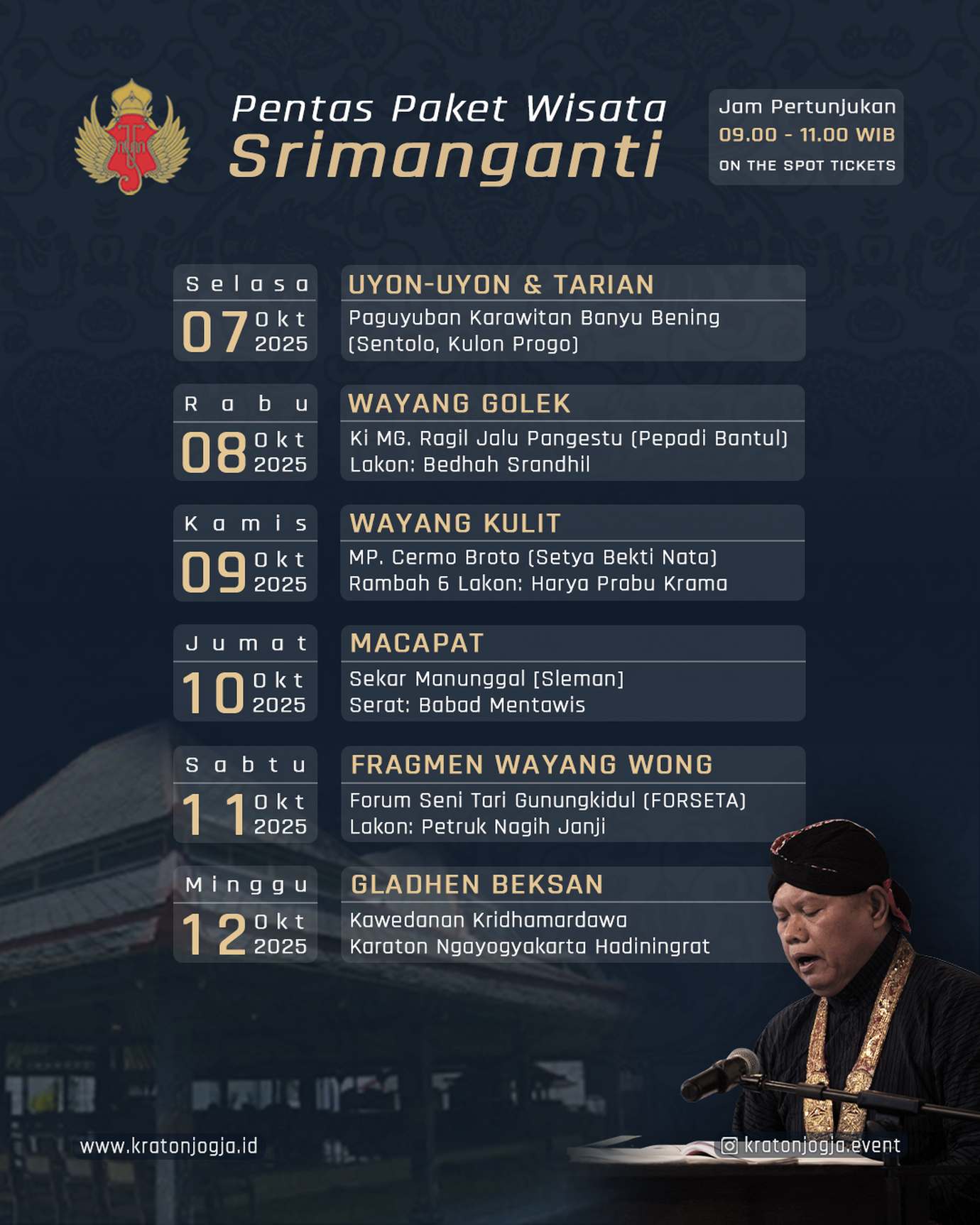 Pementasan ini dapat disaksikan langsung di Bangsal Srimanganti Keraton Yogyakarta, dengan membeli tiket masuk Museum Kedhaton Keraton Yogyakarta yang berada di area Kamandungan Lor (pelataran Keben).